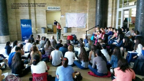 Facultad de Medicina: clase pública en el Hall de Entrada. Debate sobre la necesidad de defender el salario docente y el Derecho a la Universidad Pública.
