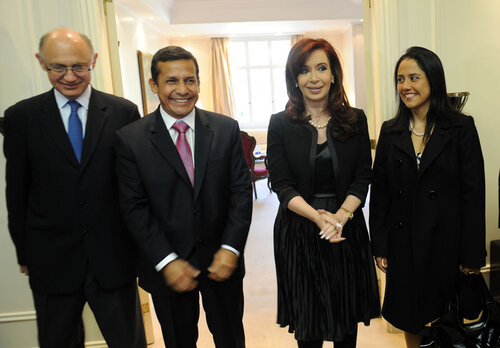 La presidenta recibió a Humala y a su esposa, Nadine Heredia, en la residencia de Olivos. El encuentro fue privado y duró una hora y media. Participaron también, el canciller Héctor Timerman y el secretario general de la Presidencia, Oscar Parrilli.
