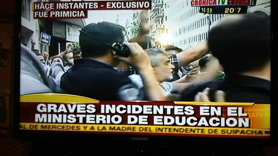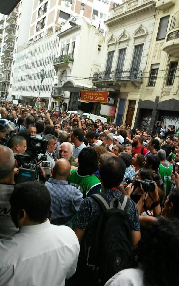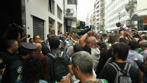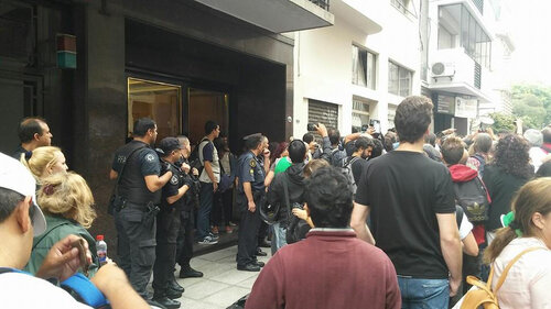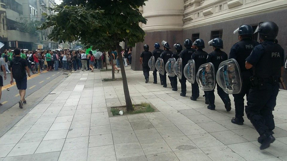 Tensión y amedrentamiento policíaco en el Ministerio de Educación de la Nación. Por orden de los funcionarios, la Policía Federal le prohíbe la salida a los trabajadores y trabajadoras que se quieren sumar a la protesta por los despedidos en el Programa Conectar Igualdad.