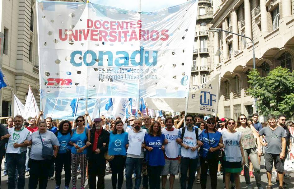 La CONADU junto a federaciones docentes y estudiantiles y agrupaciones de científicos desarrollarán los puntos de conflicto frente al intento del gobierno de imponer un techo salarial del 15% para los docentes universitarios sumado al ajuste de 3 mil millones de pesos del presupuesto universitario.