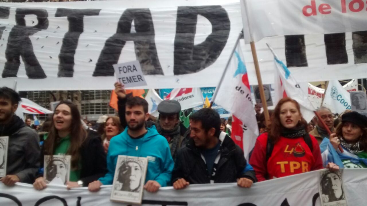 Mañana va a estar el secretario general de la CUT de Brasil y el compañero va a denunciar en la Plaza de Mayo, el golpe de Estado a la presidenta Dilma Rousseff. Nosotros sabemos que hoy hay una sola manera de derrotar el ajuste Ese ajuste se derrota con este ejemplo que estamos dando. No se derrota con documentos, no se derrota con palabras, no se derrota con actitudes ambiguas, no se derrota el ajuste poniéndole la escupidera a los empresarios de este país. El ajuste se derrota en la calle, en unidad, luchando, construyendo cada día la resistencia.