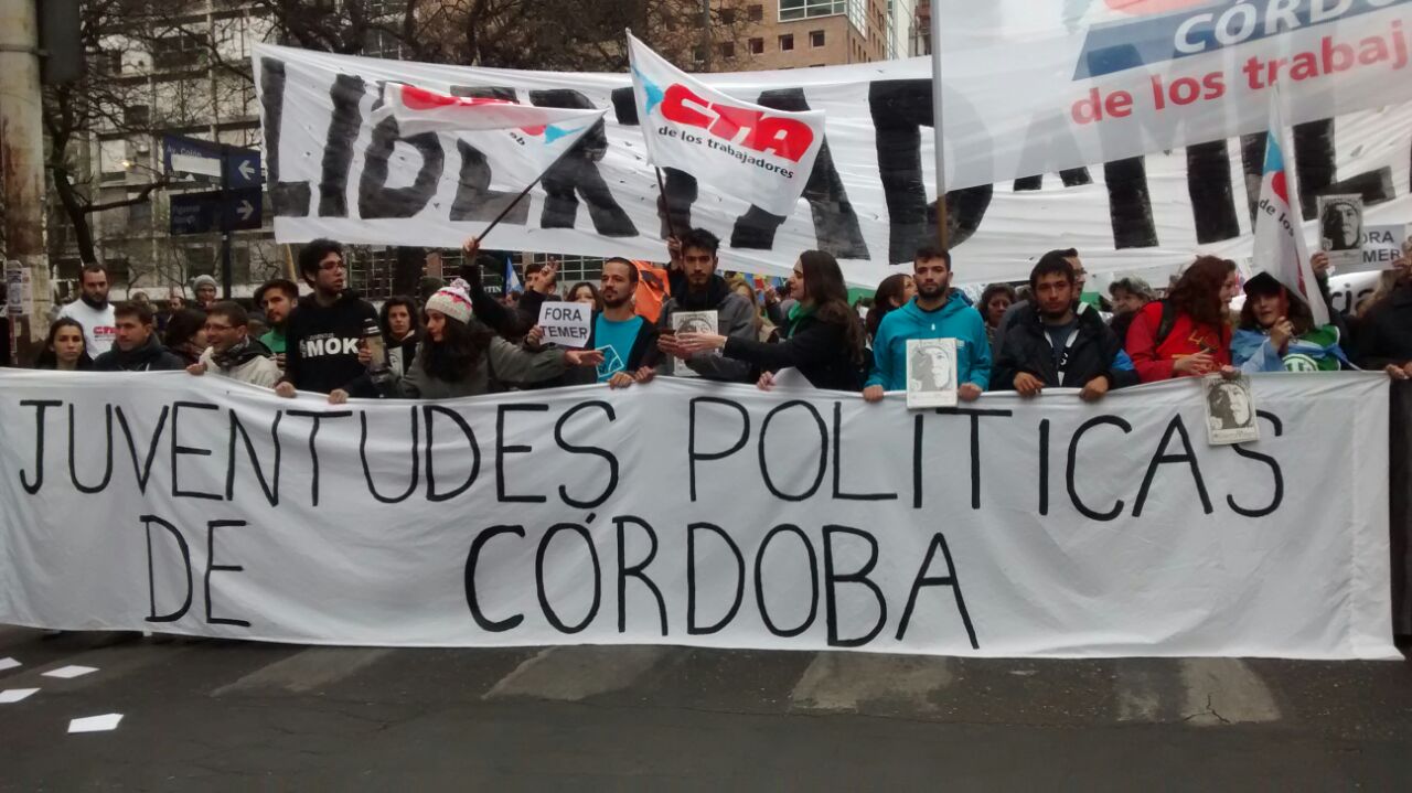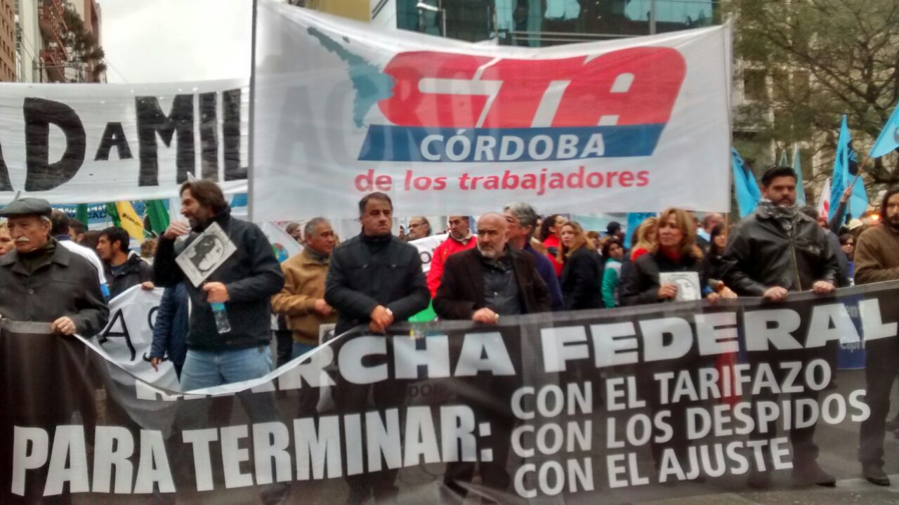 Venimos arrastrando un poco el cansancio, con ver las caras de los compañeros y compañeras que arrancaron de las provincias uno se da cuenta. Es una marcha que se hace con mucho sacrificio, con muy pocos recursos. Los que marchan a la noche duermen en los micros y ni bien termine el acto en Plaza de Mayo, van a emprender la vuelta de la misma manera. Habrán podido tomar algún plato de algo caliente, pero se van a ir con la convicción de que la historia nos puso en el lugar que teníamos que estar, la historia quiso que los que estamos hoy en Córdoba, que vamos a estar más tarde en Rosario, los que vamos a reventar la Plaza de Mayo, seamos los que digamos que el pueblo argentino está de pie, que no se rindió, que va a luchar y a derrotar el ajuste.