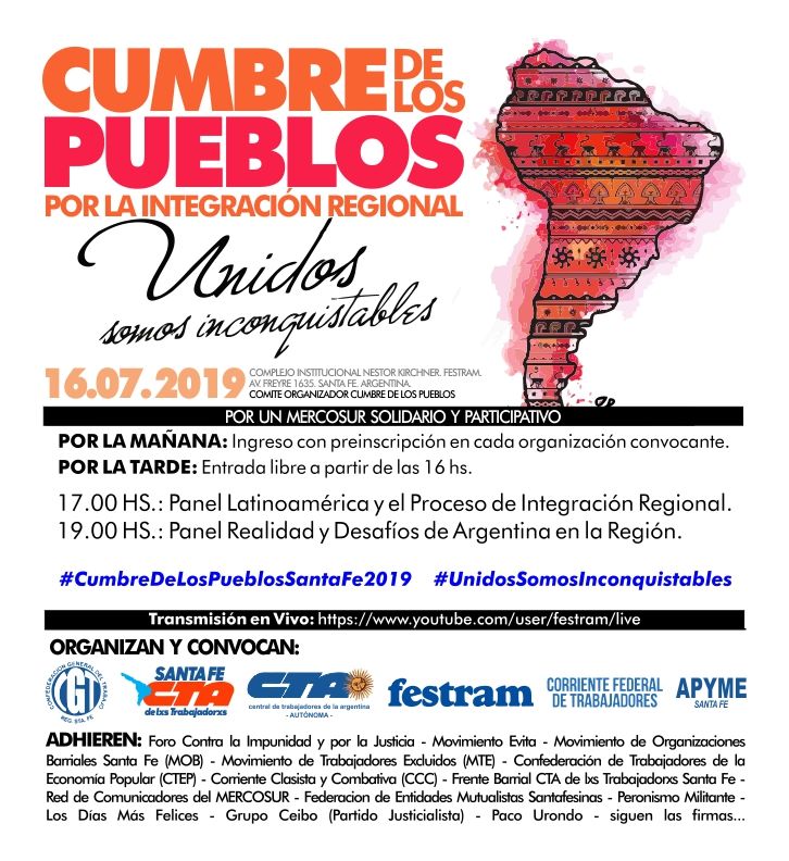 Desde el Movimiento Obrero Santafesino (MOS), la CTA nacional y la Corriente Federal de Trabajadores, emerge esta iniciativa en un contexto muy complejo, ya sea del propio MERCOSUR, de la región y de la situación política y económica internacional.