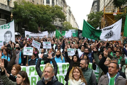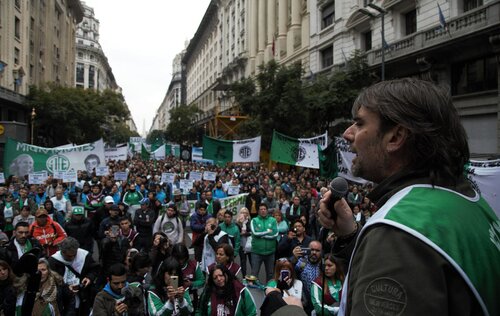 Por último, convocó a todos los gremios a realizar un paro nacional para “cambiar las condiciones de nuestro pueblo, porque no alcanza con decir que tenemos que ser pacientes y no alcanza con llegar al 27 de octubre, porque el hambre no espera”, concluyó ante una multitud.