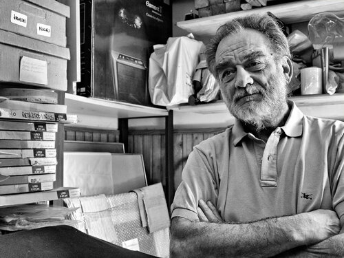 En todo caso, podés conversar un buen rato, que sí, está muy bien estar la mayor cantidad de tiempo posible para ver si el momento en que todas las cuestiones formales se cristalizan en una buena foto. Pero, de pronto un rayo de luz que entra por una ventana, una lamparita o un reflejo en una pared... Es la mirada lo que determina la buena foto. Estar atento a esas cosas, no dejar de estar mirando todo, en el momento, en que tenés un personaje delante y creo que lo que menos tenés que mirar es la cara al tipo o la mujer. Hay muchas fotos que uno no ve en el momento que saca porque está mirando todo lo demás y esa es la mejor foto. Por supuesto siempre en toda foto a parte de todo lo que te dije que pone el fotógrafo, está la persona que sí pone su tensión, su mirada, su actitud corporal y ahí sí va a estar el fotografiado. Pero, sale de ellos y de la magia de la fotografía que es muy particular.