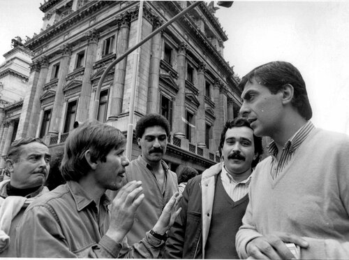 Los compañeros y amigos de Germán, recuerdan los años compartidos de construcción y militancia en la CTA: Claudio Marín, Diego Galindez y Eduardo López.