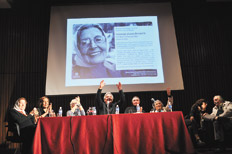 Una de sus nietas, Natalia Bruschtein adelantó las imágenes del documental que realizó sobre la vida de la histórica dirigenta. Tambièn hablaron su otro nieto Hugo Ginzberg, la integrante de Familiares de Detenidos y Desaparecidos por Razones Políticas Lita Boitano, la Madre de Plaza de Mayo Marta Vásquez, la fundadora de la Asociación de Lucha por la Identidad Travesti y Transexual, Loana Berkins, la cantante y legisladora porteña Susana Rinaldi y el director de la Biblioteca, Horacio González.