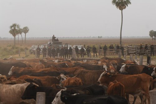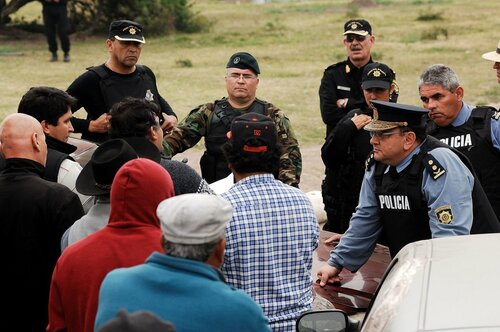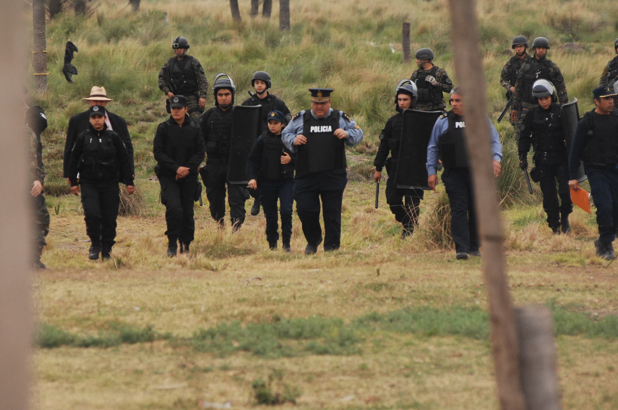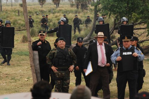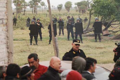 El resto de los efectivos de las fuerzas de seguridad allí presentes ingresaron por el acceso trasero al campo, acompañado estos de trafics, patrulleros y camionetas, dejando así rodeados a los pequeños productores campesinos agrupados dentro de la Asociación Civil de Campesinos Dpto. Vera y 9 de Julio que preside Cacho Barberis (a quien se intentaba desalojar) y quienes son defendidos por el Abogado Iván Bordón.
