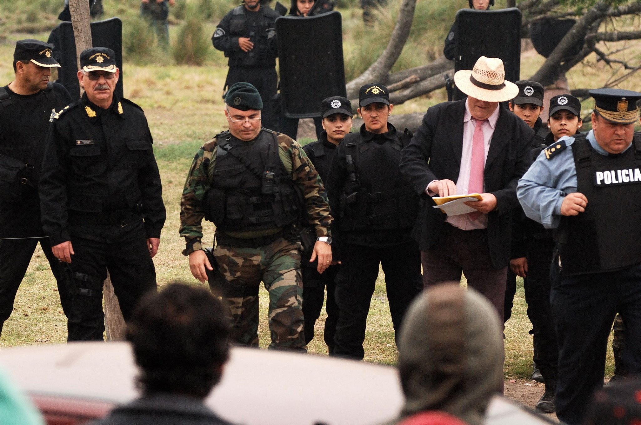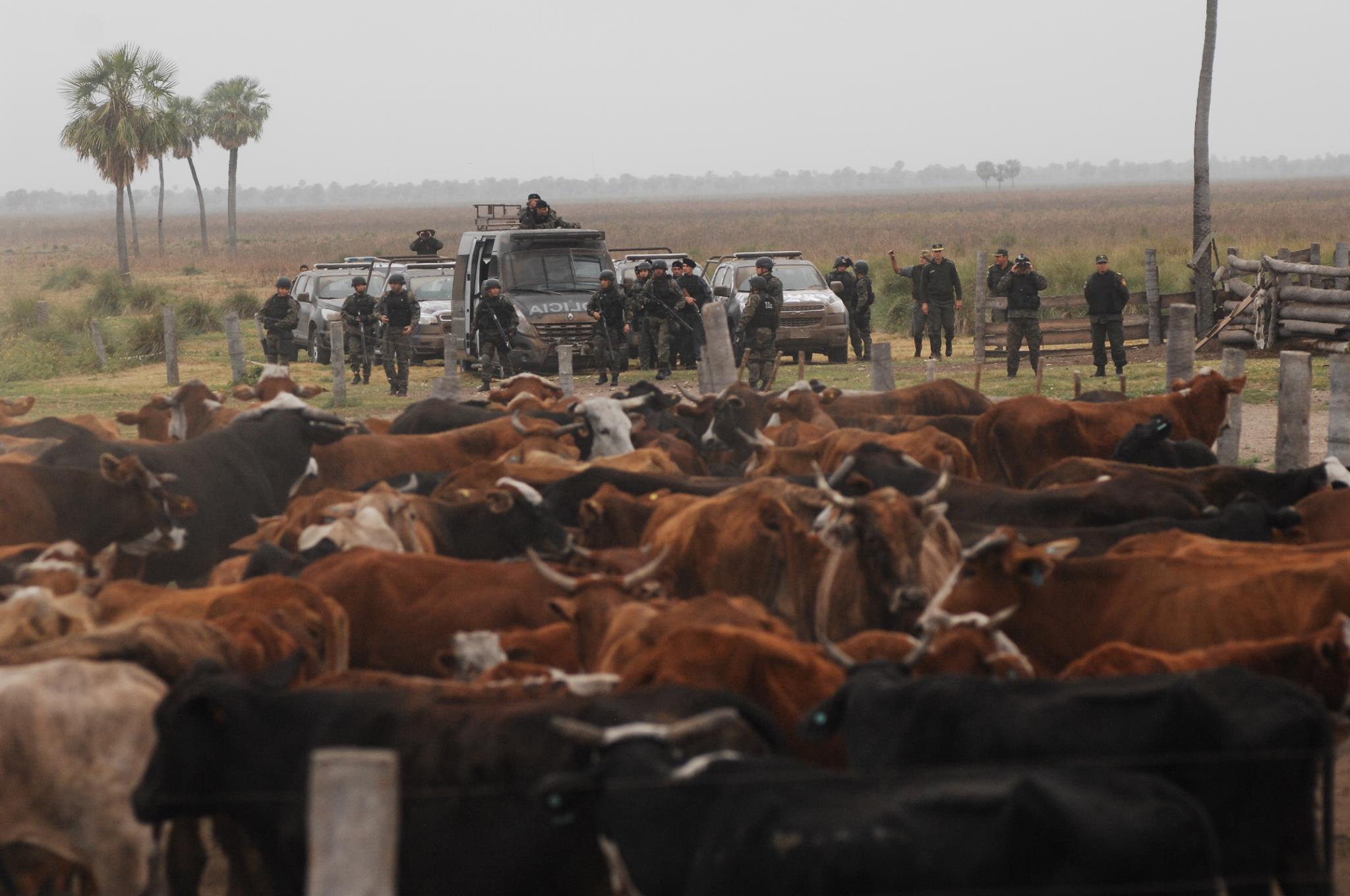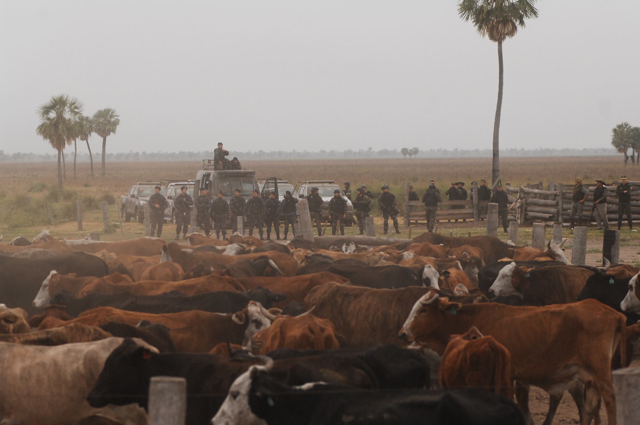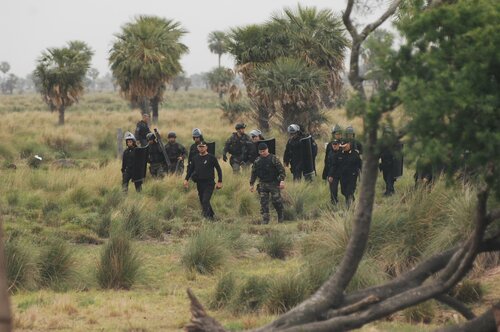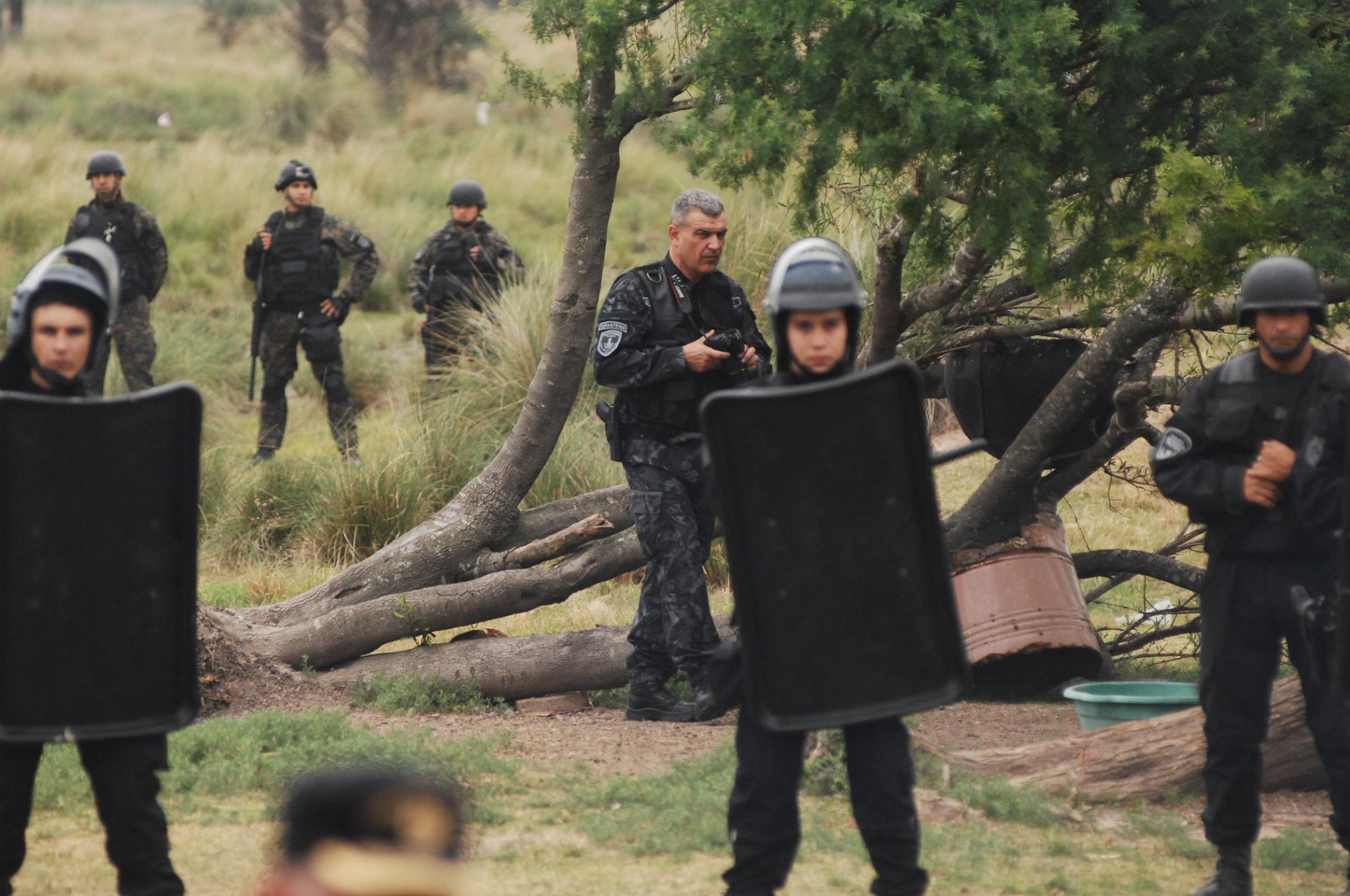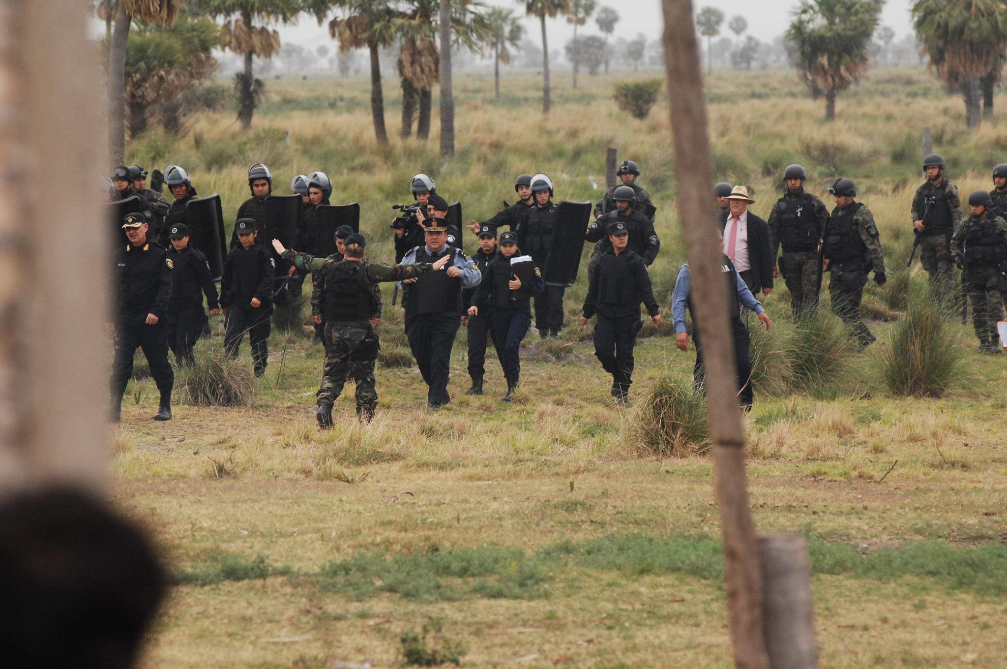 El hecho ocurrió este domingo 20 de septiembre cerca de las ocho de la mañana, horario en que ingresaron al campo alrededor de 150 efectivos de las fuerzas de seguridad de la Provincia de Santa Fe, entre los que se contaban: efectivos de la Policía y personal de Bomberos Seccional Vera y 9 de Julio, Guardia Rural Los Pumas, ambulancias, Infantería (entre ellos Daniel Alcaráz, ex Jefe de la URV) y efectivos de las Tropas Especiales de Operaciones (TOE) procedentes de la ciudad de Rosario. Las fuerzas de seguridad llegaron al lugar en patrulleros, trafics y camiones de asalto. Además, si bien no se hizo presente en el lugar, se conoció que en la localidad de Tostado se habría encontrado apostado un helicóptero.