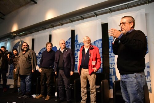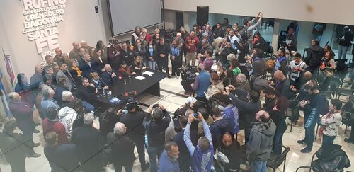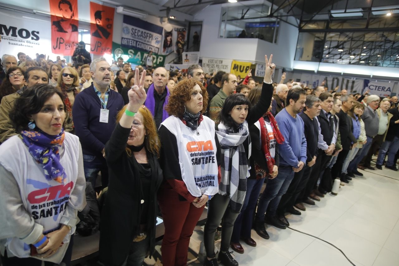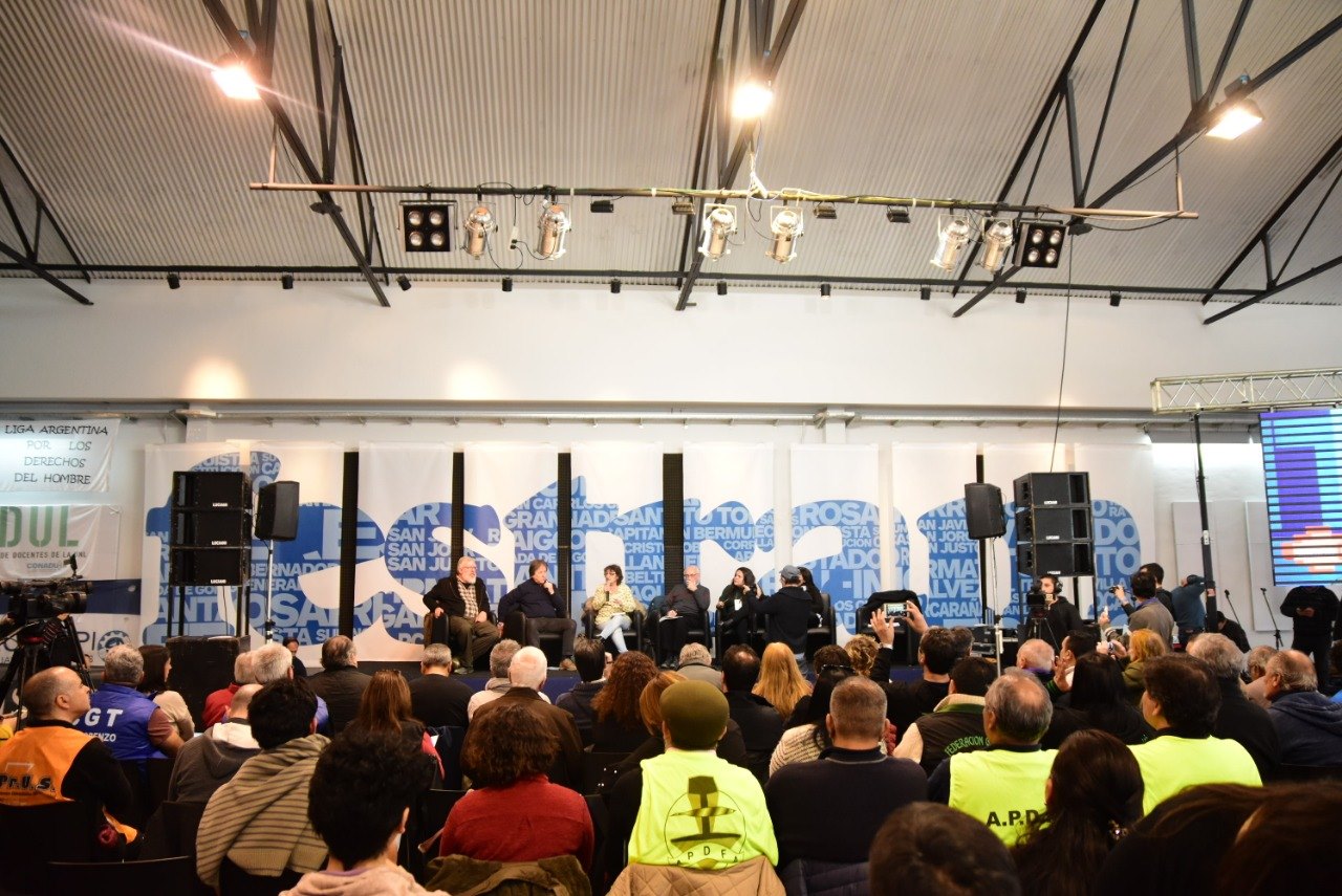 En la apertura dirigieron la palabra lxs compañerxs Patricia Mounier (SADOP/CGT Santa Fe), José Testoni (CTA Trabajadorxs Santa Fe), Claudio Girardi (CGT Santa Fe), Claudio Leoni (CFT), Froylan Aguirre (Movimientos Sociales), Óscar Vallejos (CTA Autónoma Santa Fe) y Mario Galizi (Apyme).