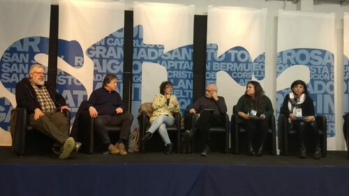Por la tarde, con la deliberación en paralelo de representantes en el Parlamento del MERCOSUR, y también el compromiso infaltable de Madres de Plaza de Mayo en la persona de la querida Otilia, hubo una segunda instancia de paneles con el título DERECHOS Y RESISTENCIAS ANTE LA OFENSIVA NEOLIBERAL . Disertaron en dos espacios Jorge Rachid, Sergio González, Carlos Minucci, el Padre Paco Olveira, Carlos Raimundi, Estela Díaz y Carlos Ortega.