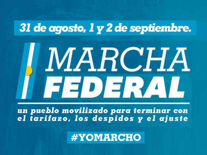 Hoy, acá, en esta Marcha Federal, decimos: empezó la cuenta regresiva de ese paro nacional convocado por todas las centrales del país para decirle al gobierno: hasta acá llegó el ajuste, a partir de acá discutimos la agenda de los trabajadores. Fuerza compañeras, fuerza compañeros, orgullo es lo que tenemos que sentir de ser trabajadores. Fuerza y de pie. Vamos a vencer.
