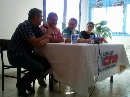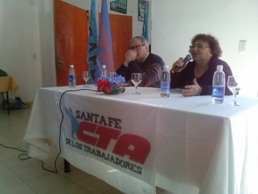 Durante la jornada se realizaron paneles y debate en talleres que contaron con las disertaciones de Lucho Fara (Funcionario del Ministerio de Trabajo y referente del CELS), Graciela Paccot (Sec. DDHH CTA Santa Fe), Marita Zurbriggen (AMSAFE Provincial/CTA Santa Fe), Guillermo Munné (abogado en causas de lesa humanidad en Santa Fe), y Valeria SIlva (HIJOS Santa Fe) entre otros destacados/as compañeros/as.