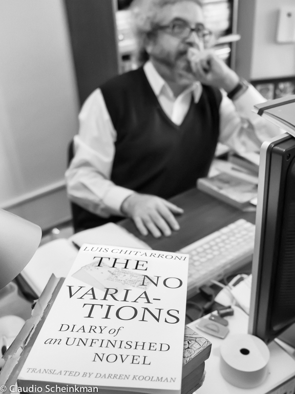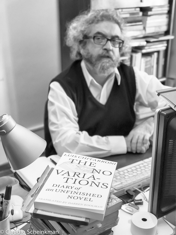 Luis Chitarroni es fiel representante de un arte en franca extinción, un exquisito conversador. Cuenta Luis que acaba de recibir la edición en inglés de su libro las Peripecias del No. En inglés lo han titulado Variaciones del no. Porque la palabra peripecias se presta a confusiones y no hay traducción literal para la palabra peripecias. Eligen variaciones por que las otras acepciones que podrían ir, remiten a cuestiones filosóficas, tales como el destino. Otra cosa que conspira en la traducción de Las peripecias del No, son la nominación de algunos personajes, tal es el caso de “Falduto”.