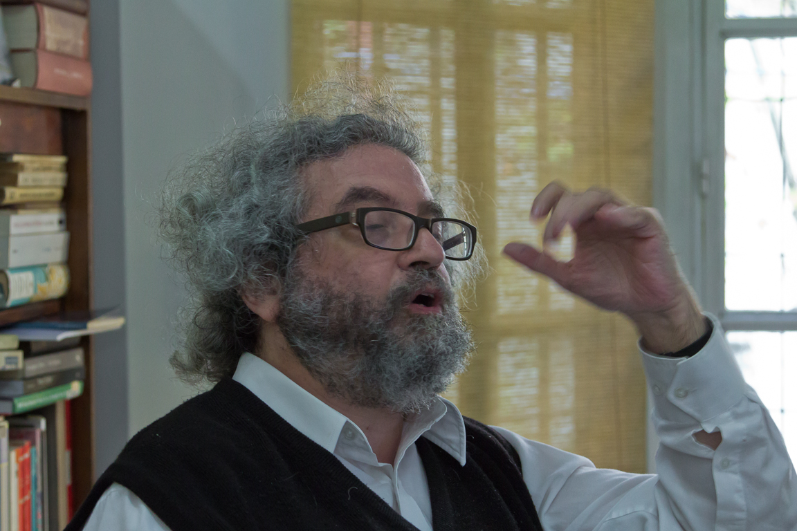 Un reportaje especial deviene en que hubo un primer encuentro, una charla agradable que en parte fue grabada y luego, ante la amenazante gripe trepando hasta su nariz, y Luís Chitarroni respondiendo a su estado de ánimo, propuso responder las preguntas por correo electrónico. De ahí la advertencia de reportaje especial, ya que entre el habla y el texto escrito producen una extraña diferencia de tono y estilo. Aclarada esta cuyuntura, y al amparo de los libros, la cronista manda la primera acotación fuera de lugar: India- { Tiene, usted, una cabellera marxista. }