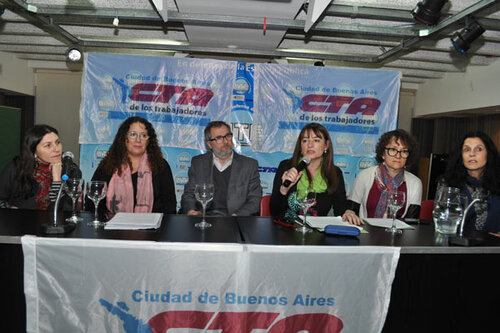 Participaron de esta actividad: Estela Díaz, Secretaria de Género de la CTA; Pedro Mouratian - representante del INADI-, por UTE-CTERA: Esteban Sueyro -Secretario de Organización-, Alejandra Bonato - Secretaria de Géneros e Igualdad de Oportunidades-, Mónica Macha -Senadora Provincial de Nuevo Encuentro-, Susana Sanz -Frente de Mujeres Movimiento Evita-, Virginia Franganillo -del Parlamento de la Mujer-, Graciela Morgade - Decana de FFyL/UBA-, y Mara Brawer -Diputada Nacional del FPV-.