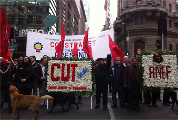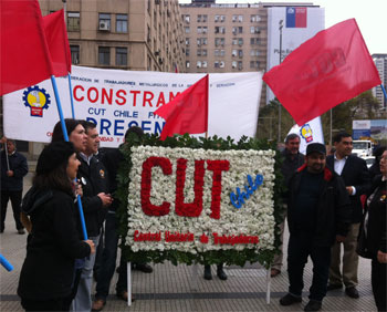 Los dirigentes de la CUT se reunieron en la sede de la multisindical y desde ahí marcharon hacia la Plaza de la Constitución, para realizar un homenaje a Salvador Allende y a los dirigentes sindicales asesinados en Dictadura.