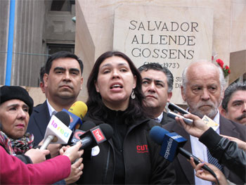 Sobre el legado de Allende y un Chile enfrentado a la posibilidad de entrar en un nuevo ciclo, la presidenta de la CUT afirmó que “creemos que aquel legado, si hoy se asume con tanta propiedad, debe reflejarse en las propuestas transformadoras en materia sindical en particular”