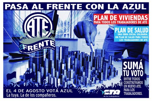 Por último Alessandrini señaló que “la Lista Azul avanza en toda la provincia de Buenos Aires y el próximo 4 de Agosto llamamos a todos los afiliados a participar y demostrarle a la conducción actual de ATE que no se puede seguir aislado en un rumbo anti popular y de olvido de los afiliados. Lamentablemente la conducción actual de ATE se transformo en una comisión directiva autista”.