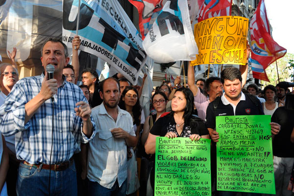 Allí estuvo la Unión de Trabajadores de la Educación, UTE-CTERA, que acompañó la concentración de las familias que hace más una semana están sin respuesta por la inscripción de sus hijos. Se trata alumnos y alumnas que aún no tienen asignada su vacante en los niveles inicial, primario y secundario de la ciudad pese a lo que establece el artículo 24 de la Constitución de la Ciudad que garantiza este derecho. Las madres y padres que hicieron uso de la palabra coincidieron al expresar que quieren elegir la escuela pública para sus hijos y seguirán insistiendo pese a las trabas que les pone el macrismo.