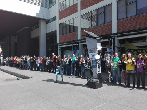 Después de cuatro días de ocupación, seguimos exigiendo que el ministro nos reciba y nos dé una respuesta a la contra-propuesta presentada por los compañeros afectados y las organizaciones gremiales.