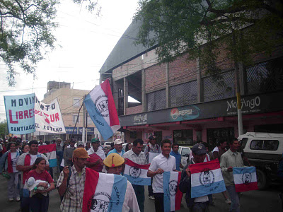 Durante la movilización miembros del Movimiento Campesino de Santiago del Estero integrados a la organización internacional Vía Campesina, denunciaron el avance de los empresarios del agronegocio sobre los territorios campesinos.