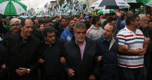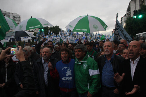 En este día tan especial, triste para la democracia en América Latina me parece que el movimiento popular argentino estuvo a la altura. Hubo una expresión unitaria, las dos CTA, la CGT, el sindicato de Camioneros, la Corriente Federal, Libres del Sur, el Movimiento Evita, La Cámpora. Grupos que a veces no nos ponemos de acuerdo en la política local aquí estamos. Esto debe tomarse como una advertencia porque la democracia está en peligro en América Latina. La derecha no puede aplicar su modelo económico y tiene que recurrir cada vez más a la violencia, al ataque judicial.