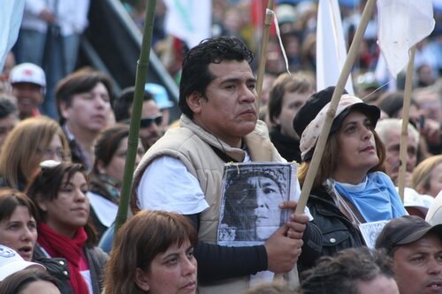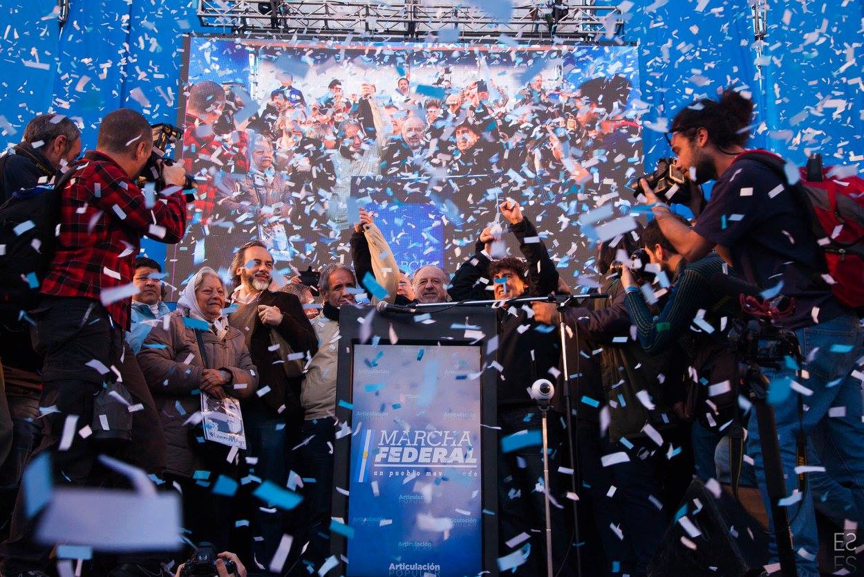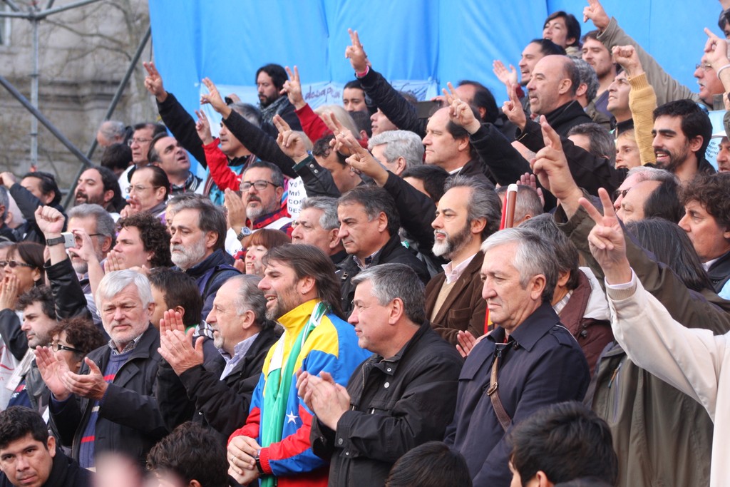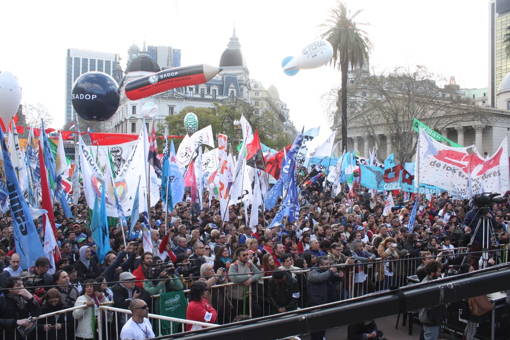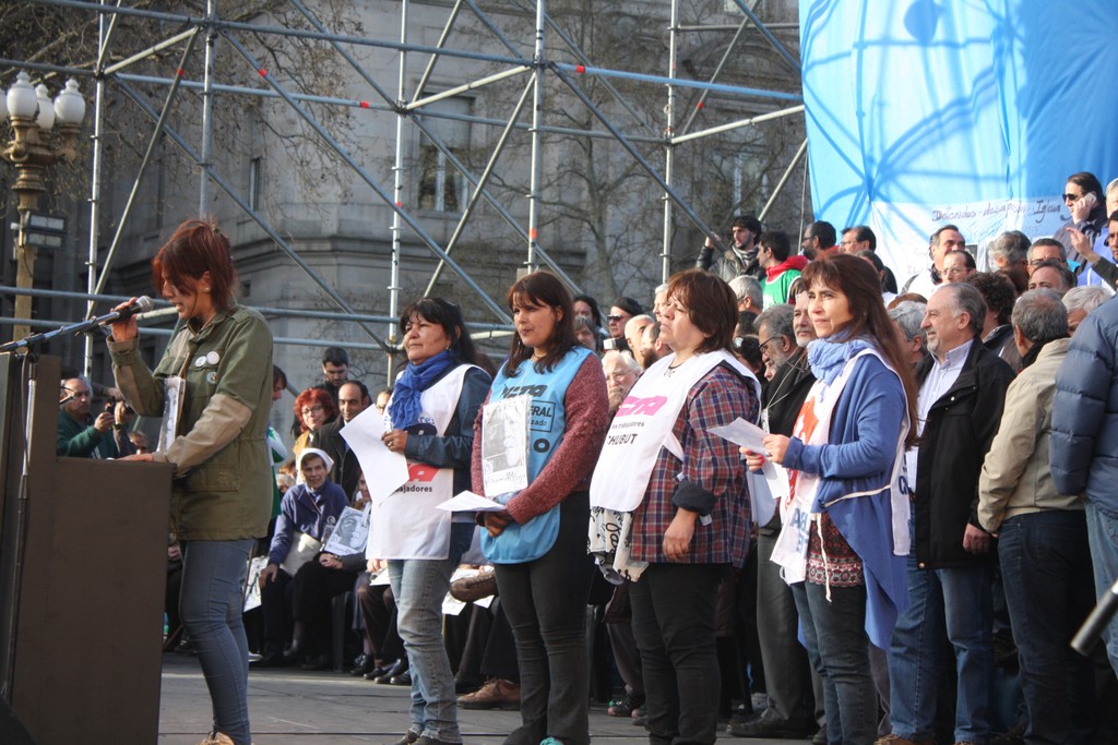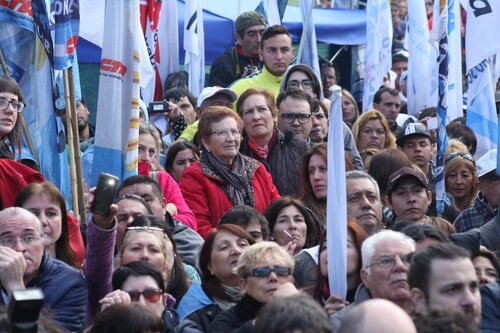 "Unidad de los trabajadores. La unidad también, que marca un momento nuevo, distinto, en la confluencia del movimiento sindical y de los movimientos sociales; la unidad en la convergencia con el movimiento estudiantil, con los organismos de Derechos Humanos, con los pequeños productores de las Apymes (Asambleas de Pequeños y Medianos Empresarios), que han estado con nosotros, los pequeños productores del agro y la agricultura familiar; la unidad con los trabajadores informales, la CNCT (Confederación Nacional de Cooperativas de Trabajo), las empresas recuperadas, la CTEP (Confederación de Trabajadores de la Economía Popular), la FTV (Federación Tierra, Vivienda y Hábitat), el Frente Transversal, muchas más. Unidad con las organizaciones de izquierda; unidad con las organizaciones que representan al sector agrario; con los cooperativizados. Esa unidad es el mapa del campo popular, que el liberalismo y el neoliberalismo quiere dividido, quiere roto, quiere que cada pedacito no encastre con el otro. Si ellos nos logran dividir, van a lograr dominarnos. Si nosotros construimos la unidad con la convicción de que esa unidad es para la lucha, por la liberación, por la emancipación social, la justicia social, si esa Unidad la construimos somos invencibles. Y hoy, en esta marcha, en este día, yo lo decía cuando estuvimos en el Cerro de la Gloria, que a veces la historia nos pone en el día, en el lugar, en la hora y el momento en que casi sin darnos cuenta, sin ser conscientes, la historia nos pone en un punto en el que somos protagonistas de un cambio profundo, de una nueva historia y hay que ser conscientes de que hoy la historia nos dice: la Argentina va a cambiar porque este pueblo no se arrodilla ante el poder económico ni ante la represión".