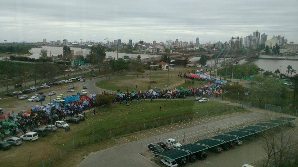 Miles de santafesinos recibieron la columna del NEA y se manifestaron en rechazo al tarifazo, el ajuste y los despidos. Desde la CTA de los Trabajadores Santa Fe, agregaron: “también marchamos en repudio a las derechas golpistas de nuestra Patria Grande”, afirmó Adolfo Avallone. “Tenemos que estar alertas para luchar contra cada ajuste del Estado, cada despido, cada acto de represión, a defender lo conquistado, y a seguir honrando a nuestros próceres y a los 30 mil compañeros/as desaparecidos/as”, aseveró José Testoni. “La clase trabajadora es una sola”, dijo el líder de la CGT, Claudio Ghirardi.