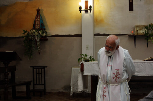 Le sigo pidiendo a Dios que me ayude a ser fiel a todo, al llamado que ese Dios nos hace y al llamado del pueblo. Como decía el obispo Angeleli: debemos tener un oído en el Evangelio y otro oído en el pueblo. No tenemos que tener miedo de meter los pies en el barro. Lo conocí al obispo mucho y realmente la figura de el me “copa” y de Carlitos Mugica, fui compañero en el Movimiento de Sacerdotes para el Tercer Mundo. Soy uno de los que todavía sobrevive. Acá los seminaristas me preguntan, se acercan a charlar y les cuento. Trato de que no se inclinen hacia una iglesia que sea dominadora, sino servidora de los hombres. Pero en su conjunto en la iglesia veo el peligro de una regresión hacia el pasado, no soy el único que lo ve.
