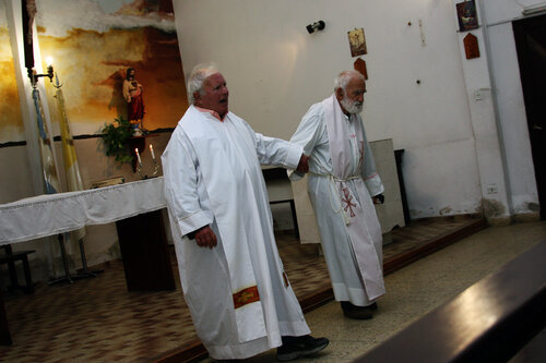 Del Muñiz voy al Rawson, del Rawson al Roffo y después estuve en el neuropsiquiátrico de mujeres, el Moyano y después ahí con mis compañeros de común acuerdo - estaba en un equipo de sacerdotes- me aconsejaron dejar esa experiencia hospitalaria que me traumatizaba mucho. Y fui al barrio de Villa Luro a vivir con otros curas de esta línea pastoral más bien conciliar. Ahí éramos tres o cuatro y fue madurando en mí la idea de ser cura obrero. Quise intentarlo en Capital Federal pero el Cardenal Caggiano me dijo que no, pero que busque un obispo que esté de acuerdo con esto y estaba Jerónimo Podesta en Avellaneda. El me dijo que sí, que el primer año no trabaje. De párrocos, acá en Wilde, había dos curas franceses: Andrés Lanzón y Juan Loason. Llegué a Wilde en 1966, un dia antes de la famosa Revolucion Argentina de Ongania, en Junio. Hace 45 años. Apenas llegué el párroco me envió al barrio donde después fue surgiendo la parroquia del Valle.