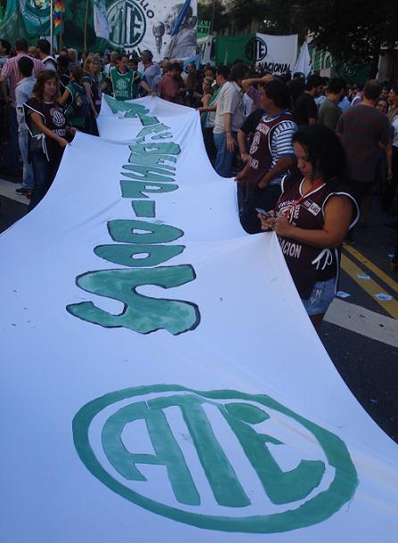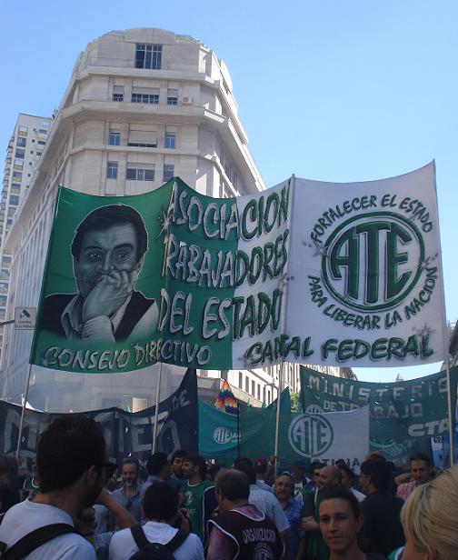 Venimos con muchas medidas de fuerza y este gobierno juega al desgaste. Este gobierno hace tres meses que está sometiendo a los empleados públicos, y viene diciendo que nosotros sobramos, que dice que somos la grasa, que dice que no servimos, que dice que estamos ocho horas mirando el reloj a que pase la hora. Este Gobierno vino a atacarnos y hace tres meses que no para con el ataque brutal hacia nuestra tarea. Tiene un desprecio muy grande por el Estado, y nosotros tenemos que frenarlo con el sentido común. Porque ellos generan desprecio porque hoy vienen por nuestros puestos de laburo, pero en el fondo lo que quieren es volver a privatizar YPF, Aerolíneas Argentinas, que los Ferrocarriles vuelvan a manos privadas, porque lo que quieren es ser ellos los dueños de esta Patria, ser los que privaticen para comprar todo aquello que hemos recuperado durante estos 12 años. Por eso nuestra obligación es no ceder ni un centímetro, no permitir que se privatice ninguna de las obligaciones que ha asumido el Estado, obligaciones sentidas, porque nos ha costado miles de compañeros muertos recuperar este Estado al servicio del pueblo.