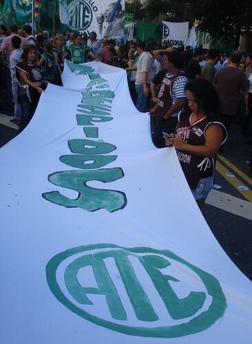 Y nosotros sabemos que el tema central hoy son los despidos, pero también sabemos que tenemos que ir a discutir salario, y también tenemos que poder tomar decisiones respecto de eso. Porque estamos viendo con preocupación que hay sindicatos que le creen al Gobierno que va a mejorar la política económica. Hay sindicatos que confían que se puede firmar una paritaria anual. Este sindicato que está hoy acá en la calle no confía en este Gobierno, y no va a bancar que la paritaria sea por única vez. Vamos a exigir una paritaria abierta, para poder discutir todos los meses que sea necesario la condición salarial de nuestros compañeros de laburo.