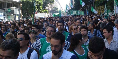 Pero ustedes saben que el día de ayer fue largo y no solamente hubo situaciones en donde que los trabajadores estuvimos peleando y llevando propuestas en el marco de unidad. También tuvimos la desdicha de un Senado que se agachó ante los grupos económicos. También tuvimos la desdicha de un Senado que no tuvo criterio para poder pensar en el presente y en el futuro de nuestra Patria. Y tenemos que decirlo, porque para nosotros es vergonzante que Pichetto haya dado libertad de votación. Solamente se puede pensar en esa situación cuando hay una situación distinta dentro del marco democrático. Los trabajadores, los argentinos, la sociedad, fuimos a votar un proyecto político. No fuimos a votar para que hagan lo que se les ocurra. Esos senadores tienen una responsabilidad con la entrega de la Patria, y merecen todo nuestro repudio por haberlo hecho, porque están pensando en clave electoral cuando nosotros estamos pensando en la supervivencia de todos los días.