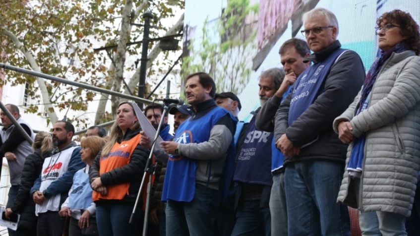 En la ciudad de Rosario, nuestra CTA junto a todo el Movimiento Sindical Rosarino e importantes sectores sociales del sur provincial, se marchó en unidad desde la esquina de Paraguay y San Juan hacia la Plaza 25 de Mayo, donde se realizó el acto central en repudio a este presente oscuro que viven las familias trabajadoras de nuestra provincia y el país.