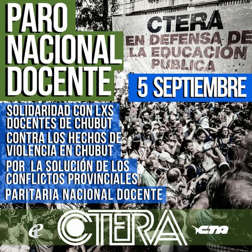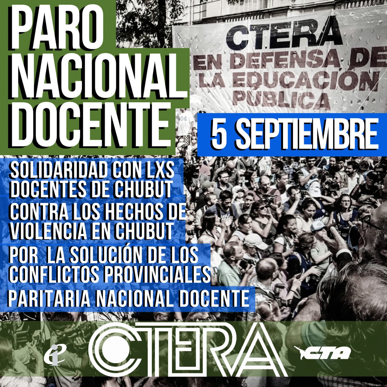 Impulsamos una gran jornada de lucha, en el marco de la convocatoria al paro nacional de CTERA, que impulse la movilización de toda la comunidad educativa articulada con acciones de protesta en cada una de las provincias.