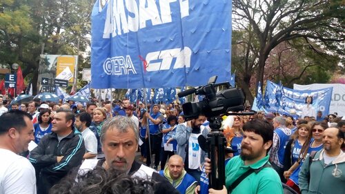 En ese marco, en el escenario dispuesto en la intersección de calle Salta y Av. Alem, los dirigentes de la Corriente Clasista y Combativa -CCC- y de la CTEP coincidieron en que cada vez hay más niños/as que concurren a los comedores, son mayores las necesidades sociales de los sectores populares, y repudiaron la represión que aplica “este modelo de ajuste”.