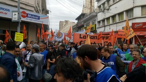 El microcentro de la ciudad de Rosario se vio invadida este martes al mediodía por más de 20 mil trabajadores/as, que protagonizaron una histórica jornada de paro y acto masivo.