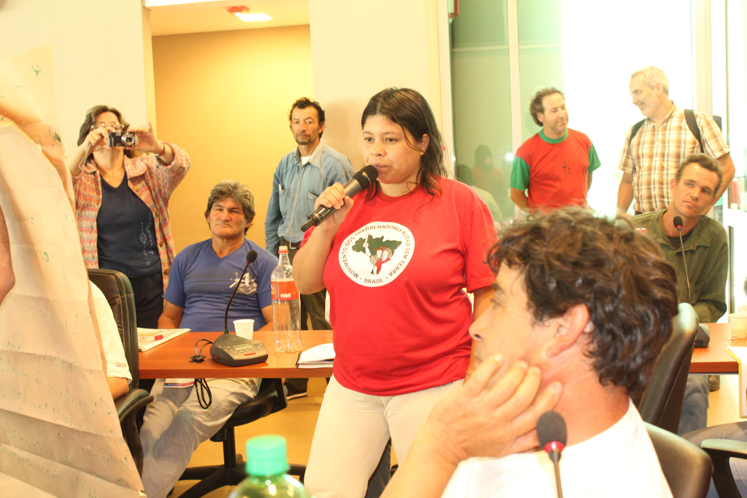 Tenemos la necesidad de articular esta decisión esta respuesta con el acurdo del poder ejecutivo nacional porque no queremos hacer una ley que salga en los diarios o para que salga en algún programa de tv, si no que queremos hacerlo con la decisión del poder ejecutivo nacional de manera que la ley entre en diputados y pueda votarse en diputados, si no que cuando vaya también en senadores también se pueda votar, pueda convertirse en ley y al mismo tiempo sea una construcción social popular y nos devuelva lo que estamos buscando que no es solamente para los desalojos, no solamente parar la violencia que se ha llevado la vida de nuestros compañero, sino convertirnos el hecho mas importante en sujetos no solamente productivos si no también políticos del país que queremos, la sociedad que queremos e ir acompañando este proceso de reconstrucción del país”.