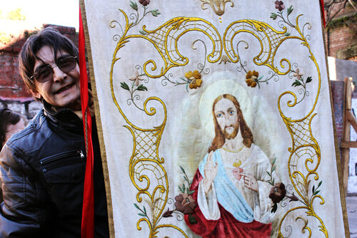Soy nieto de genoveses, cuando era chico iba de la mano de mi abuela Aurelia Paganini a todas las fiestas que hacían acá los emigrados y que trajeron todas sus tradiciones y devociones. La más importante es La Madonna de la Guardia en Vernal, porque es la patrona de Génova, de la Liguria. Es como acá en el país Nuestra Señora de Luján. Cada lugar tiene una protectora. Ahora se ha ido perdiendo, pero cuando era chico recuerdo que se llenaban los trenes hacia Bernal con fieles que iban a los festejos. Estos emigrados trajeron sus tradiciones y también trajeron sus Cristos. Para los descendientes lígures son fechas de honor y todos participan.