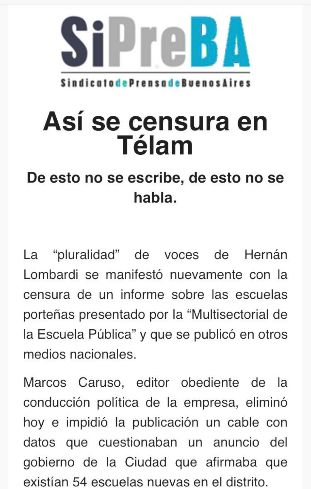 Es evidente que, en medio de la campaña electoral, el macrismo no quiere que la ciudadanía sea informada sobre la situación de abandono que sufre la educación producto de su política de ajuste. No sólo gastan fortunas en propaganda sobre escuelas que nunca construyeron, también censuran la información en los medios públicos.